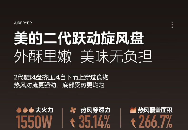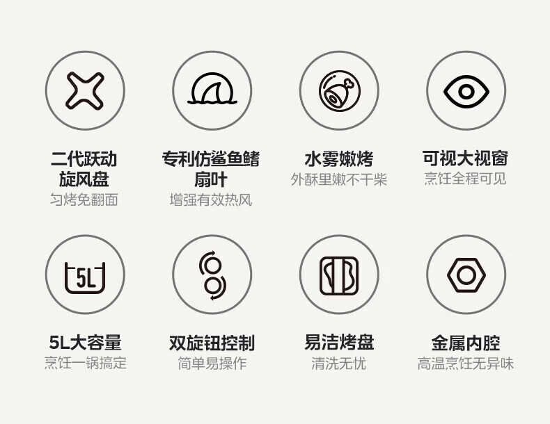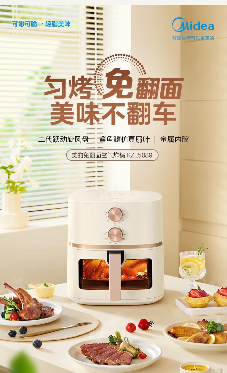 型号:MF-KE5089 容量:5L 产品尺寸:长372mm;宽276mm;高295mm 均烤免翻面,全金属内腔,高清可视窗口